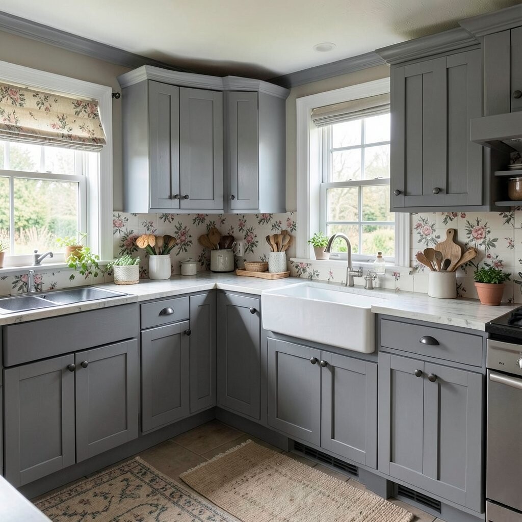 This idea is perfect for those who love a homey and welcoming kitchen. Use floral curtains or wallpaper to enhance the cottage vibe.