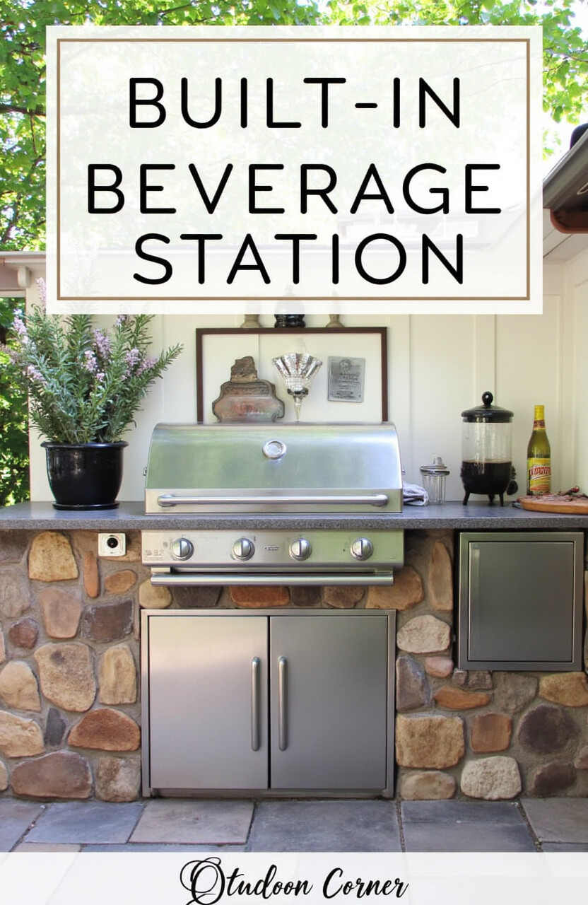 Keep refreshing drinks within arm’s reach with a built-in beverage station. It can be as simple as a cooler with a countertop or a more elaborate setup with a sink and mini-fridge. This feature turns your grill area into a full-service outdoor kitchen.