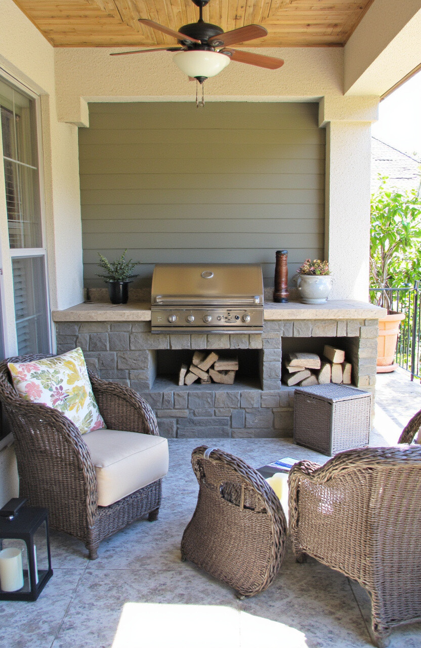 This garden wall not only beautifies the space but also improves air quality. It’s a trendy, eco-friendly feature that’s bound to impress your guests. Customize it with your favorite plants and watch your grill corner blossom with nature’s touch.