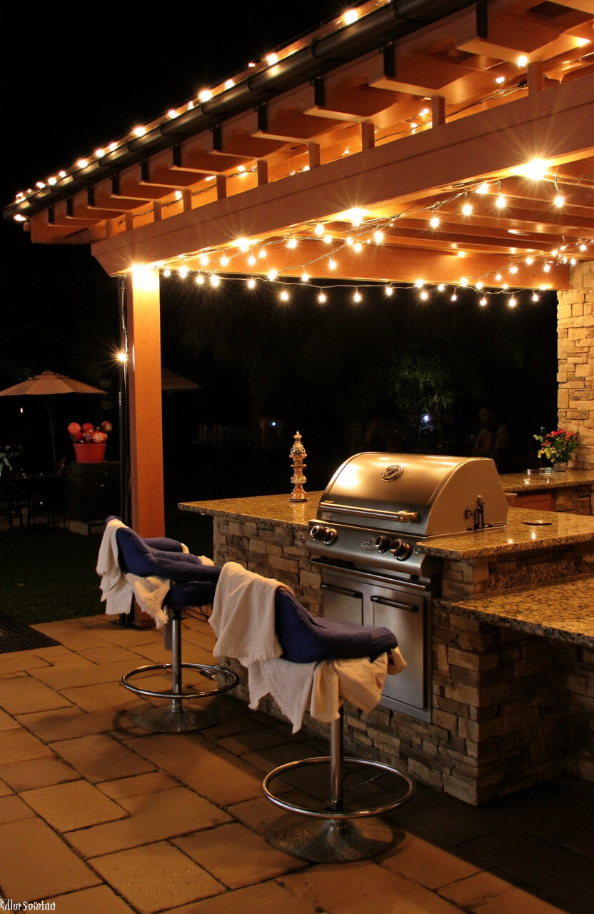 Enhance the ambiance with string lights. Hang them around your grill counter for a magical, twinkling effect.