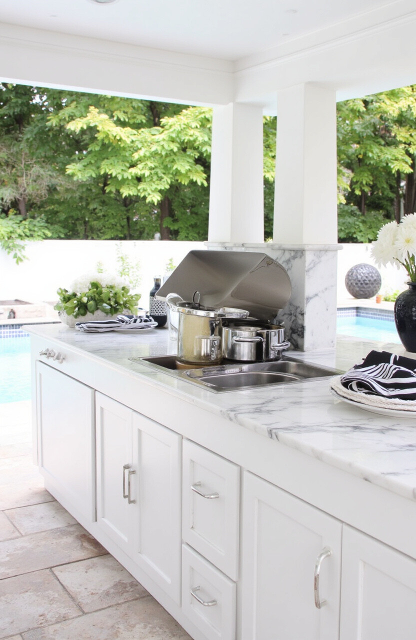 Transform part of your grill counter into an outdoor bar. Include a drink station with mixers, glasses, and a mini-fridge.