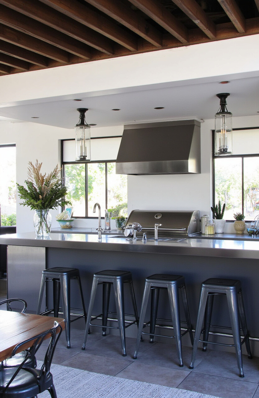 Go for a sleek, industrial look with metal surfaces and exposed elements. This style is bold and striking.