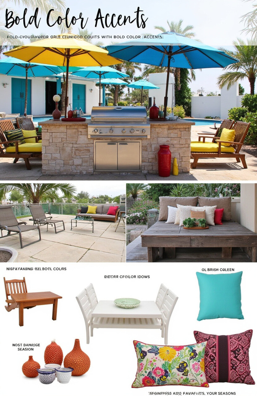 Infuse your grill counter with bold color accents. Use bright cushions, umbrellas, or decor items to add pops of color.