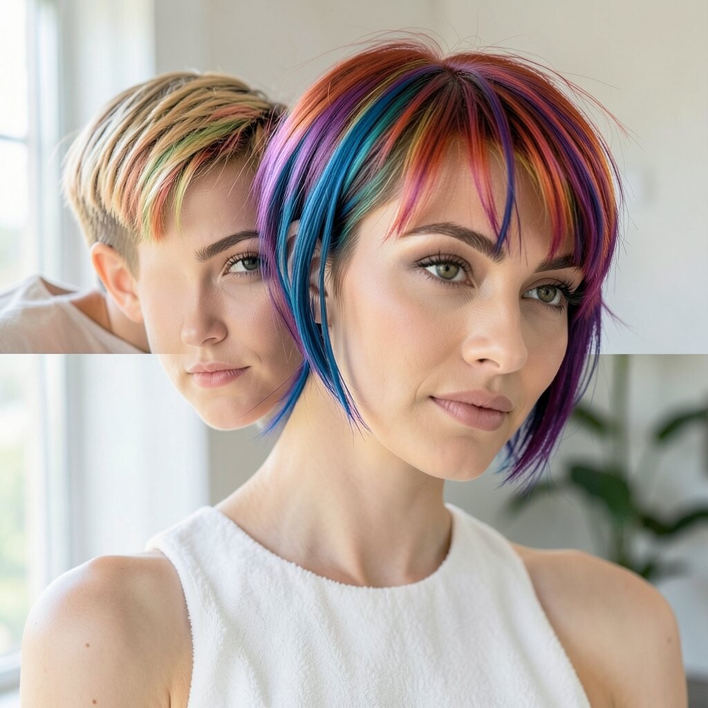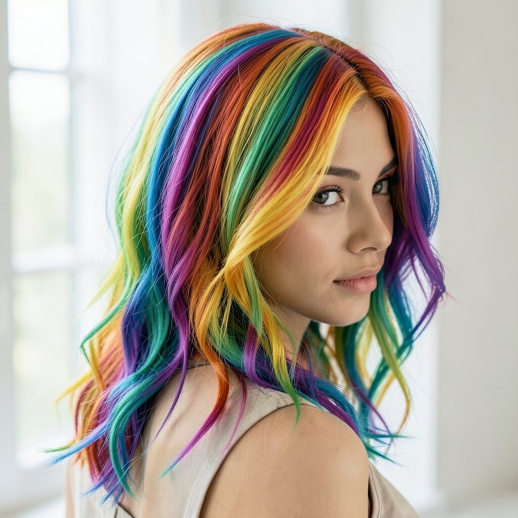 Unleash your inner unicorn with rainbow hair. This colorful trend is all about having fun and breaking the rules.