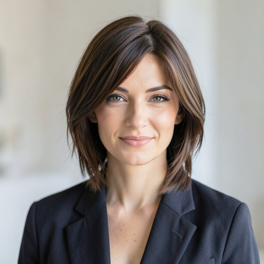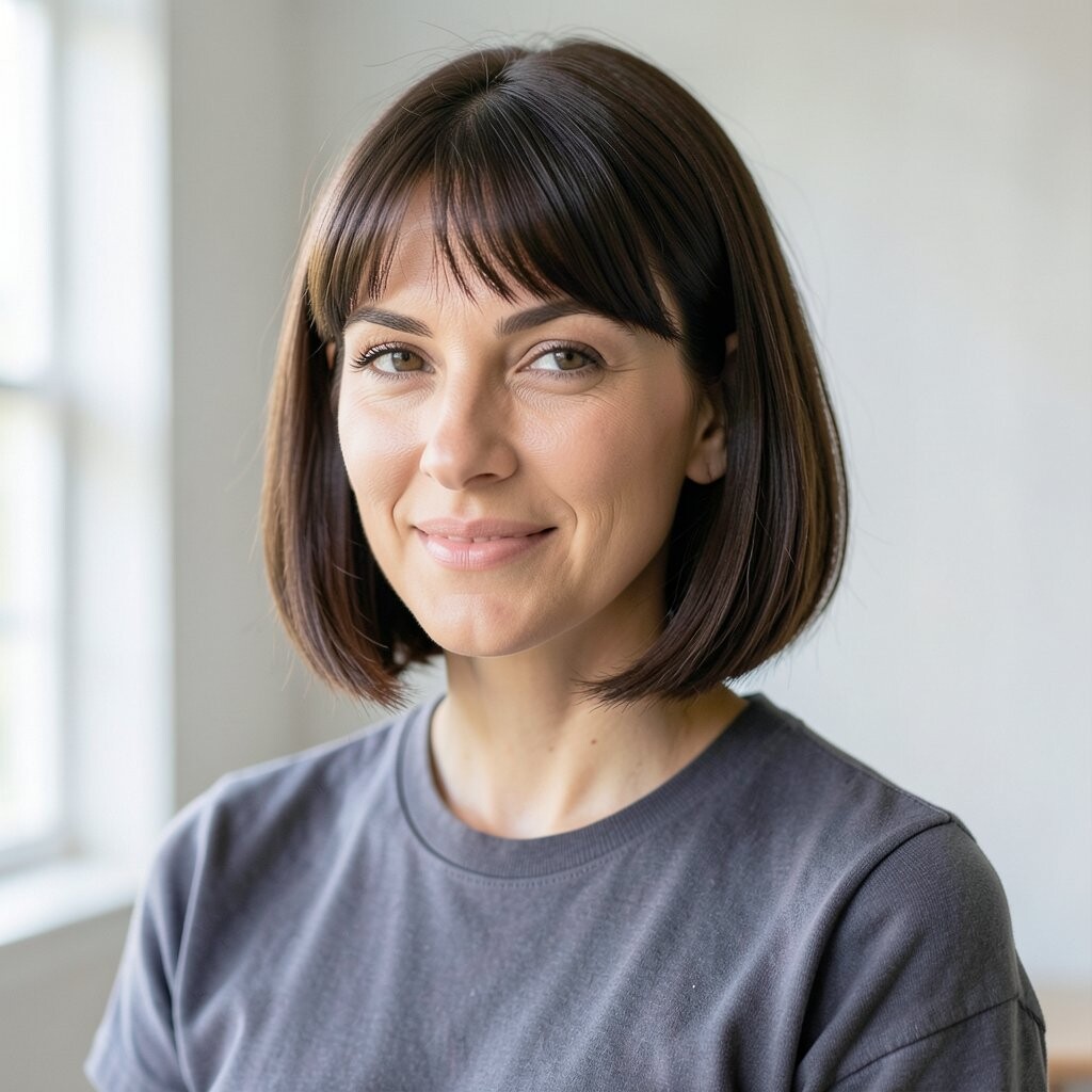 For a polished, professional look, try a sleek bob. This straight style is perfect for any occasion.