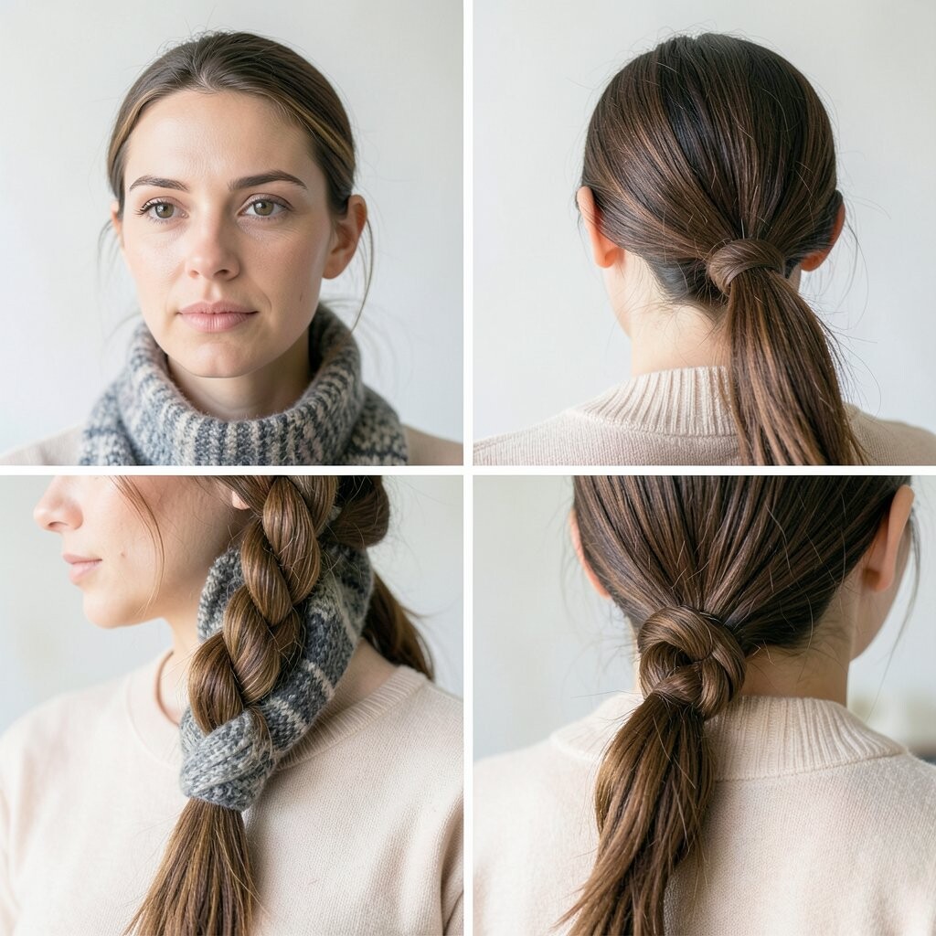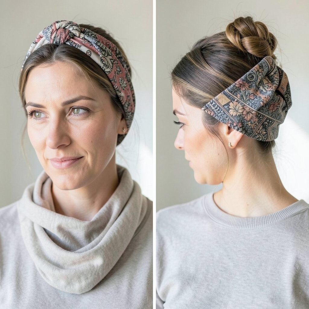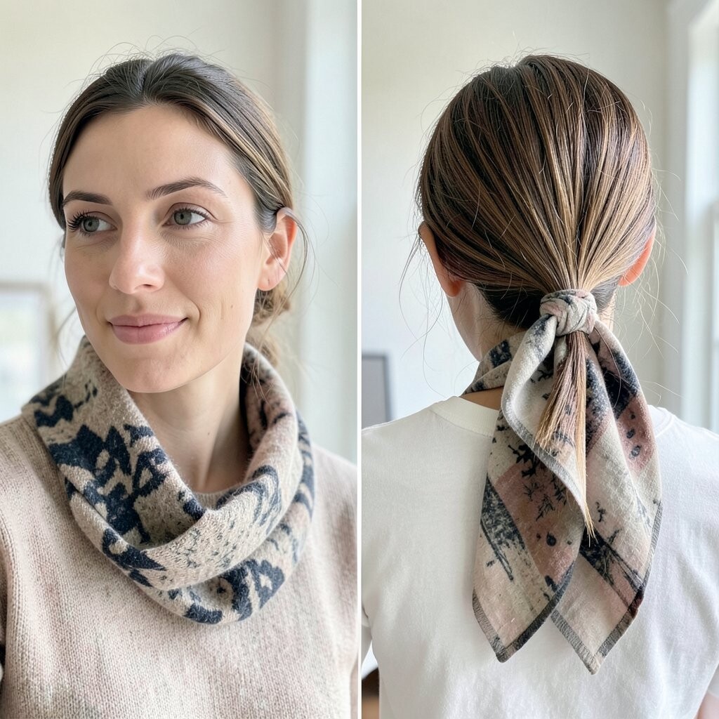 Wrap your scarf around a low bun for a sophisticated touch. It adds a hint of luxury.