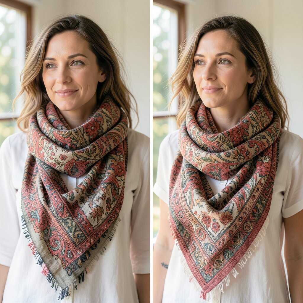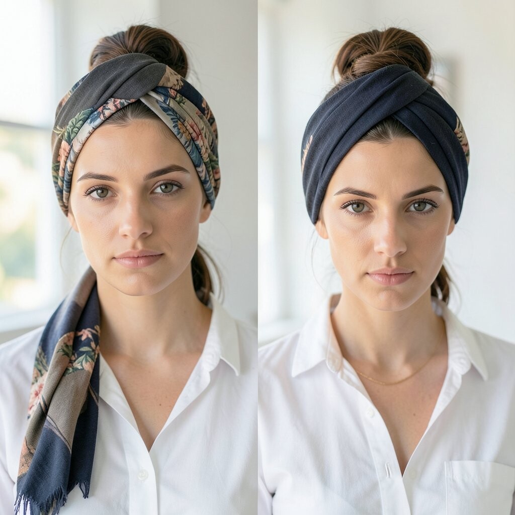 Twist your scarf into a turban shape for a dramatic effect. It’s perfect for making a statement.