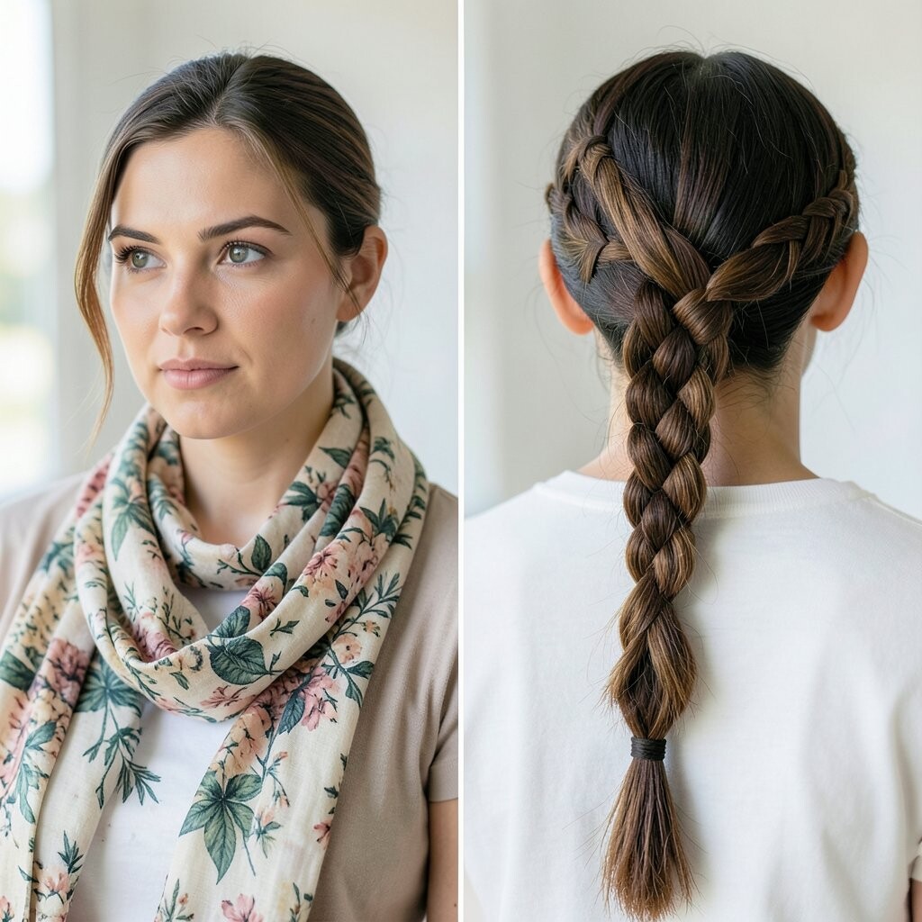 Braid the scarf along with your hair for a creative twist. It’s perfect for special events.