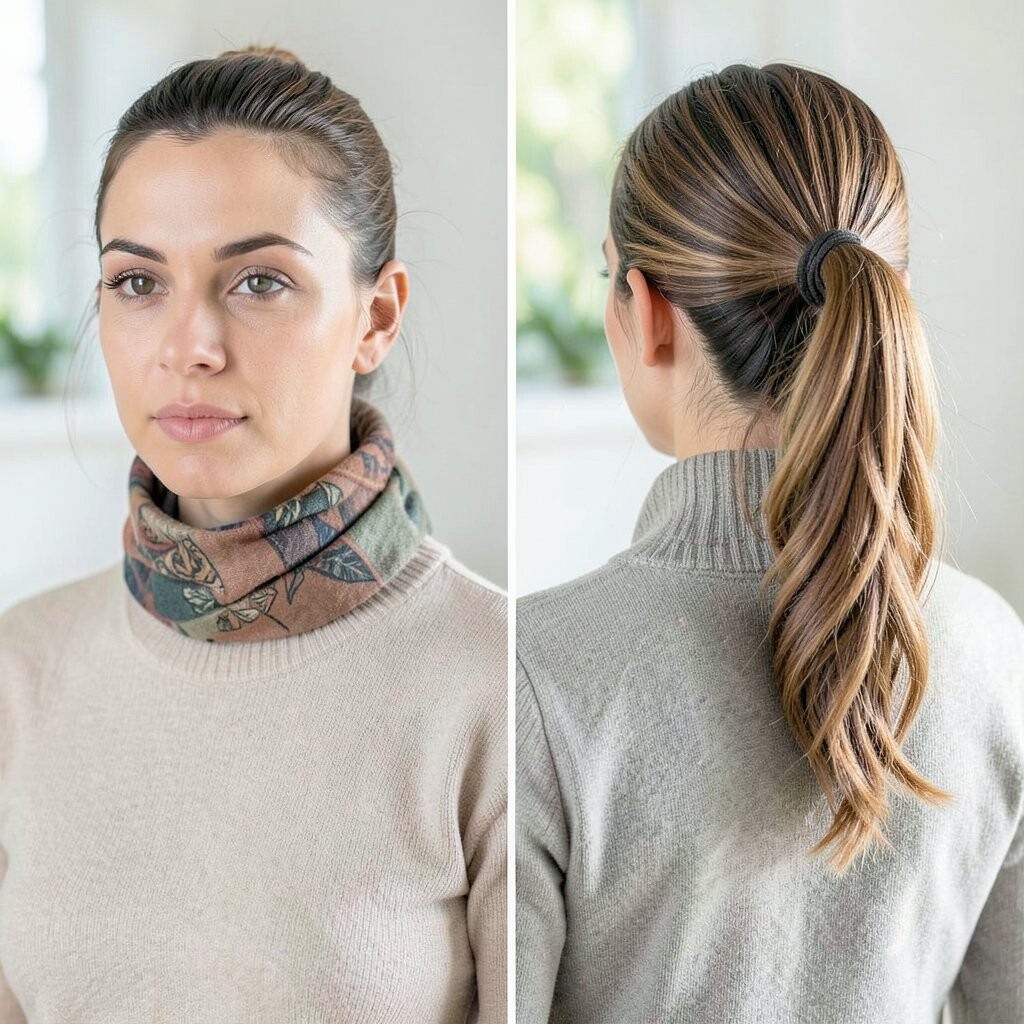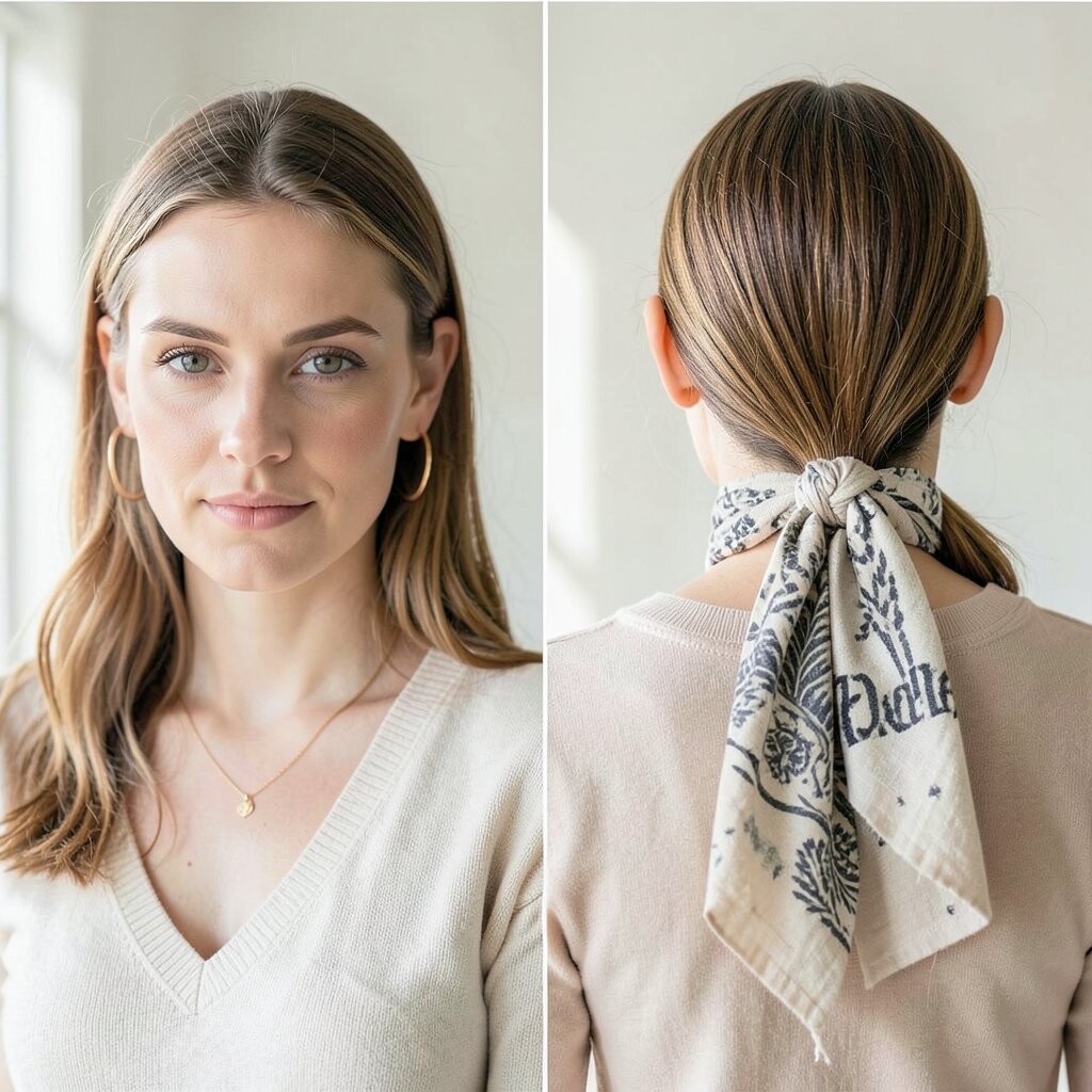 Tuck a scarf into your hair for a sleek finish. It’s simple yet effective.