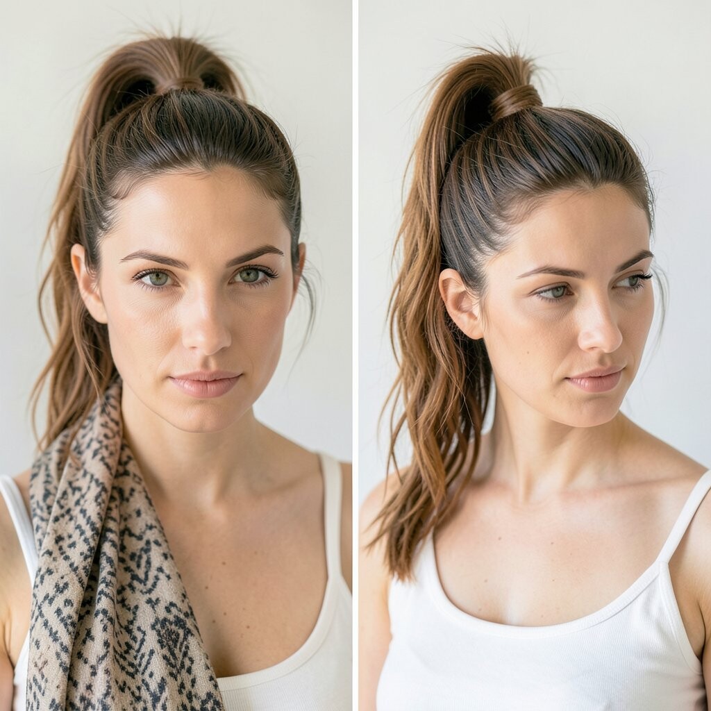 Elevate your high ponytail with a scarf wrap. It’s energetic and stylish.