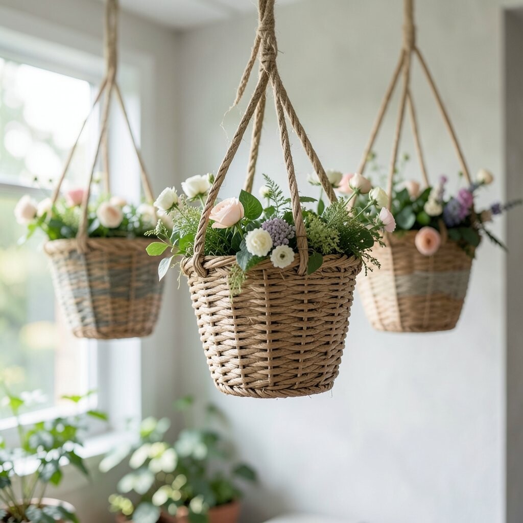 Keep the plants healthy with regular water and a little trim now and then. For personalization, choose a basket weave that matches your home style, like smooth, rustic, or sleek. The cost can be low to moderate, especially if you use common leafy plants.
