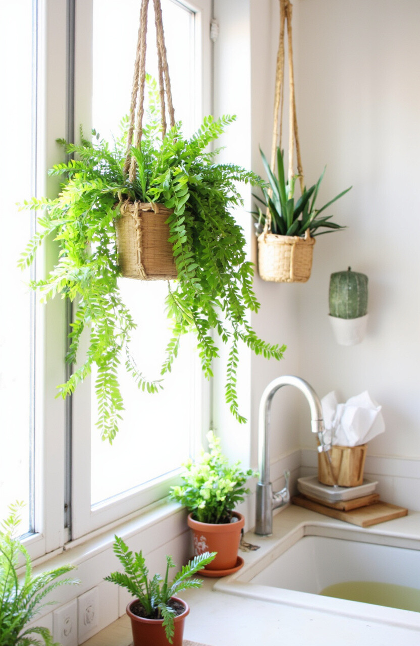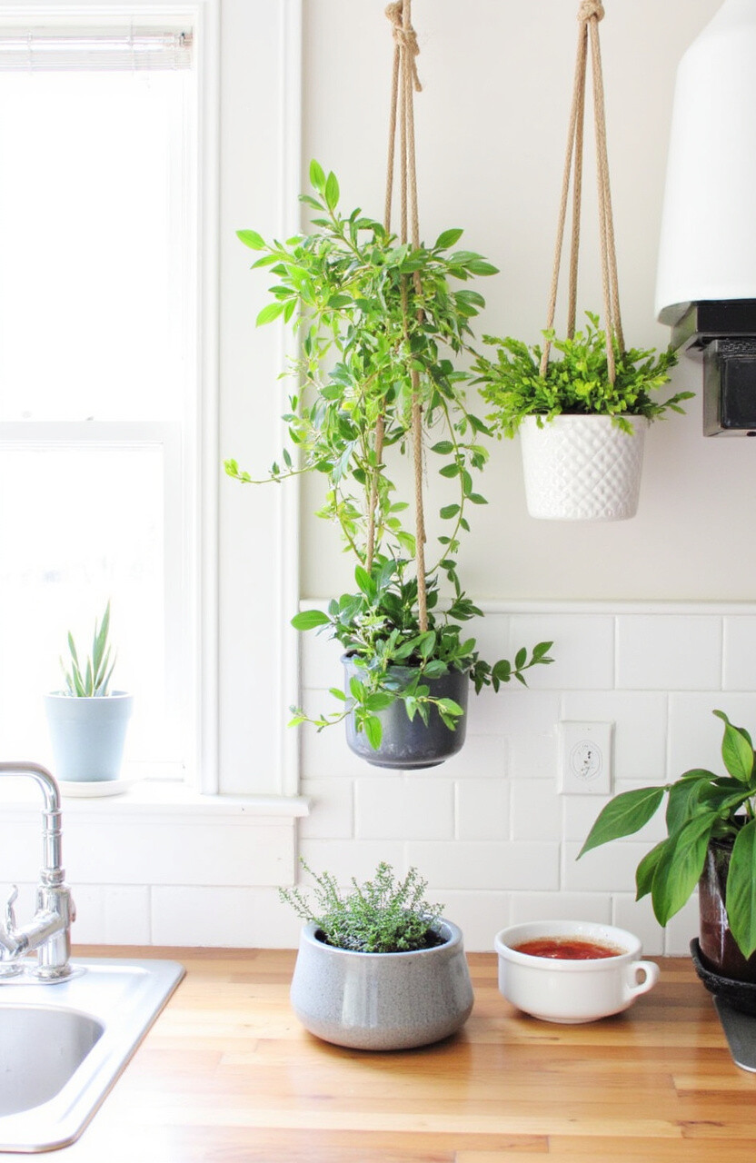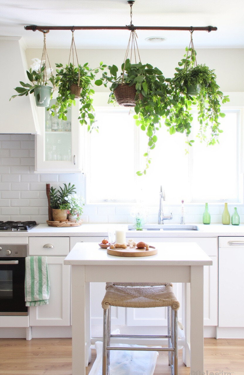 The kitchen is more than just a place to cook; it’s a canvas for creativity. Infusing greenery into this beloved space can bring a refreshing touch. Imagine the joy of having a mini garden hanging right above your head while you prepare your meals.