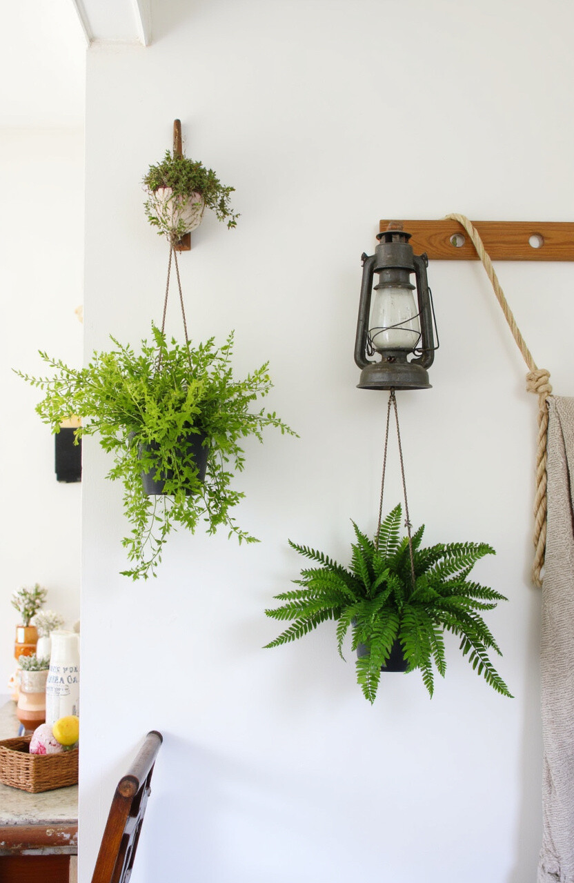 A wooden ladder can be an unexpected yet charming way to display your hanging plants. Lean it against a wall and hang small pots from the rungs. This creates a vertical garden that’s both rustic and chic.