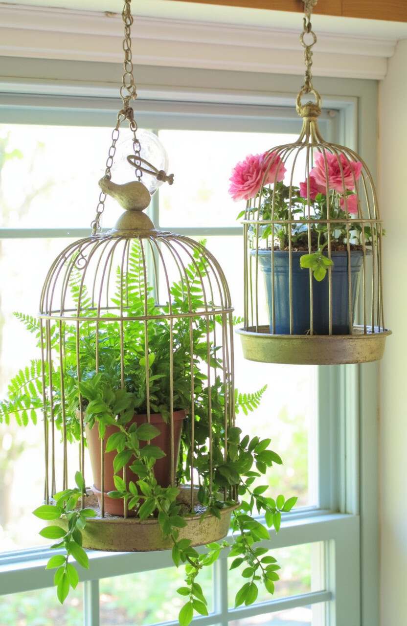 Repurpose old birdcages into unique planters. Hang them in the kitchen and fill them with small ferns or flowering plants. The vintage charm of birdcages can add an eclectic touch to your decor.