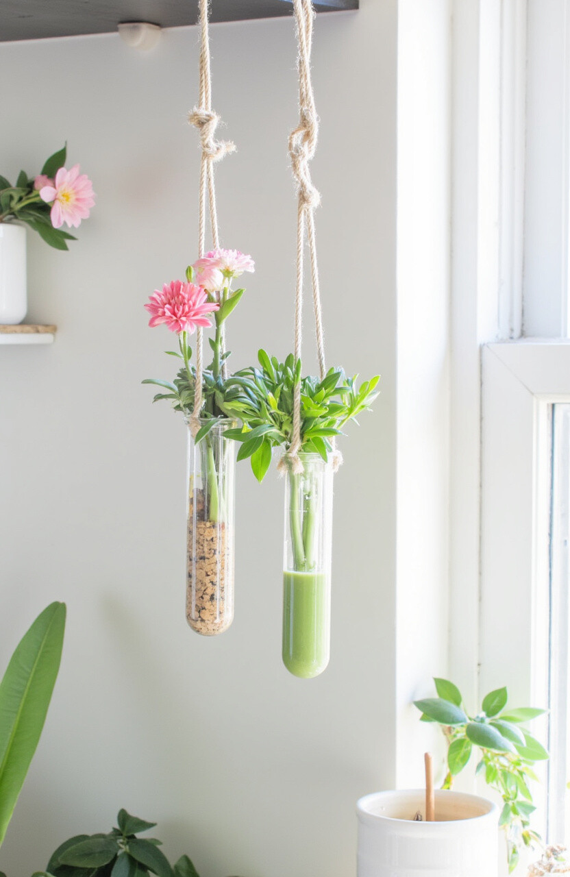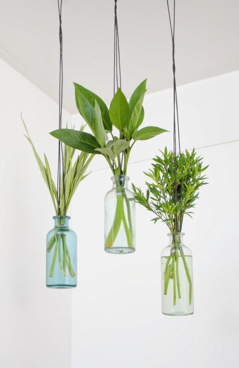 Cylinder vases offer a sleek and modern way to display plants. Hang them at different heights for a visually striking effect.