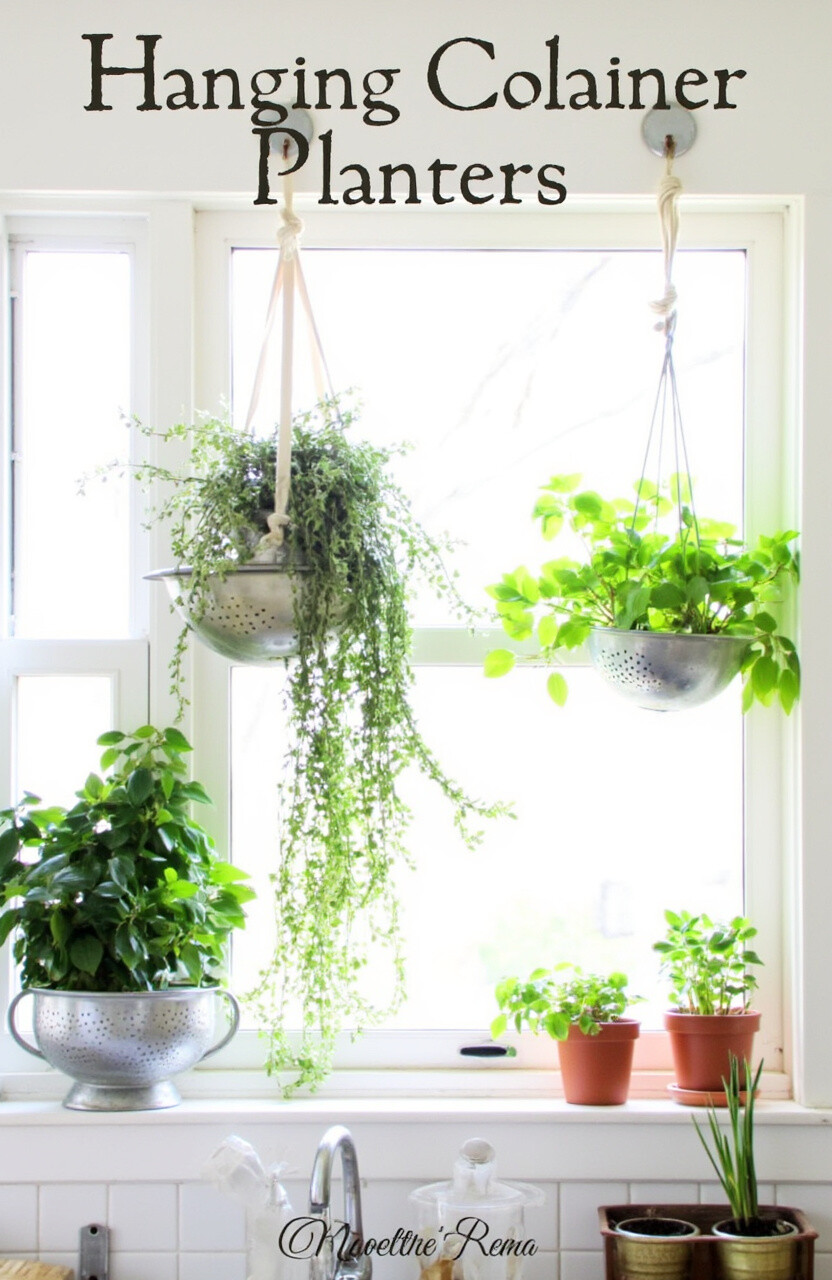 13. Hanging Colander Planters