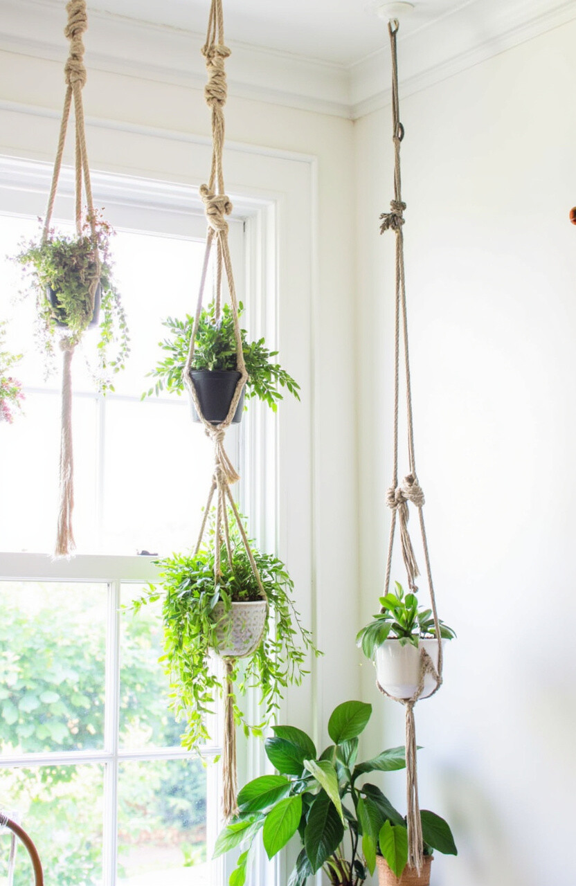 Rope gardens allow you to hang multiple plants in a vertical line. This is perfect for narrow spaces where you want to add greenery without taking up too much room.