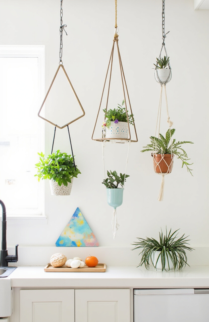 Geometric plant holders are a trendy way to add a contemporary touch to your kitchen. Available in various shapes, these holders can be hung individually or in clusters.
