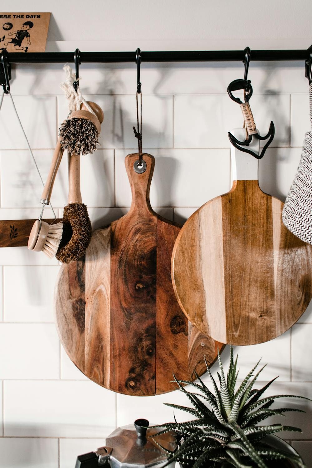 Use hooks to easily swap out plants as the seasons change. This is an excellent way to include plants like ivy or pothos, which can trail beautifully. The overhead rail is a modern and sleek option for any kitchen.