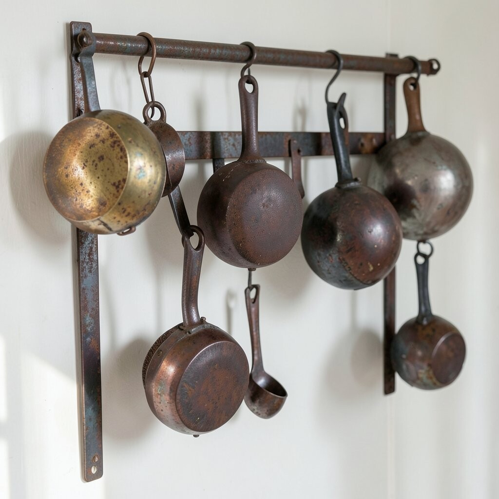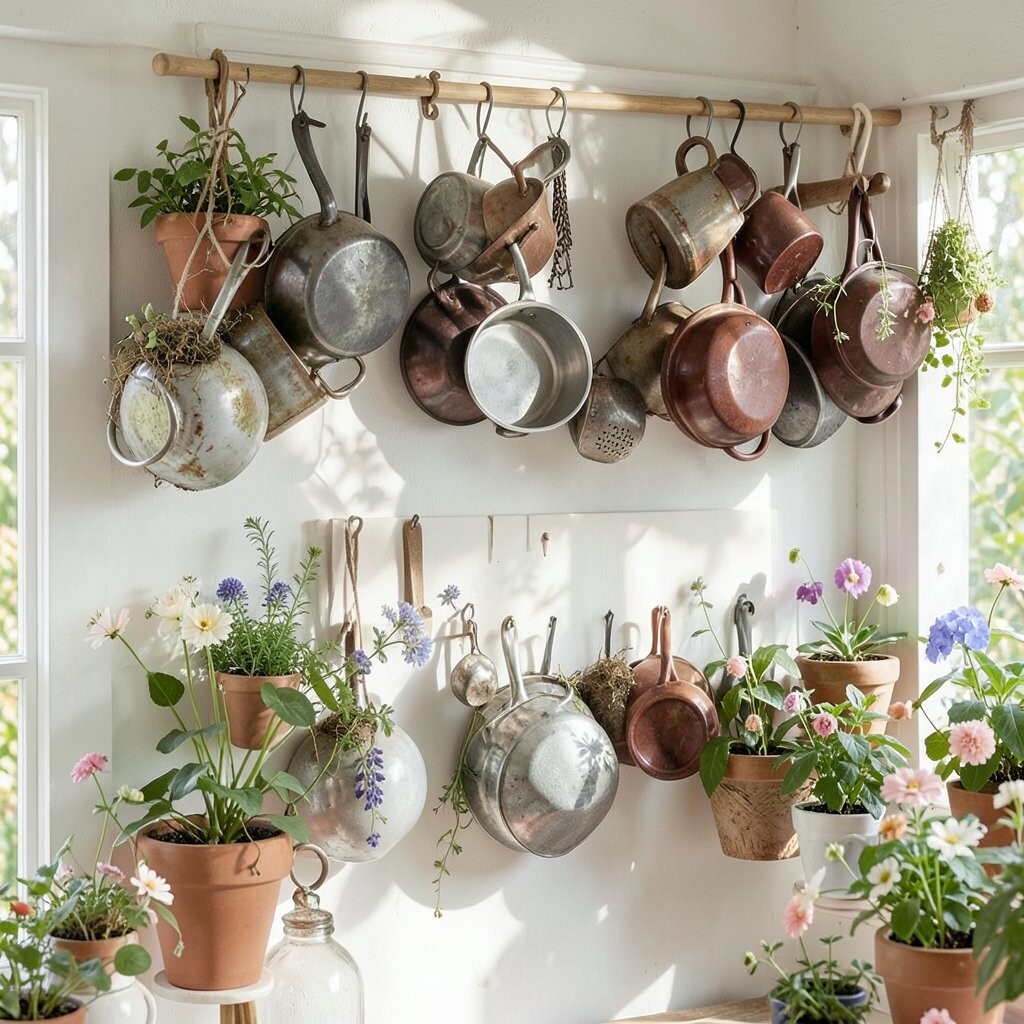 Ladders are great for adding height and depth. You can hang pots on the rungs and even add small baskets for herbs. It’s a budget-friendly way to make your kitchen stand out.
