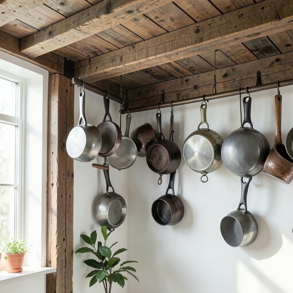 Wooden beams are sturdy and can hold heavy pots with ease. They add a natural element, making your kitchen feel cozy and inviting. Using reclaimed wood can make it even more unique.