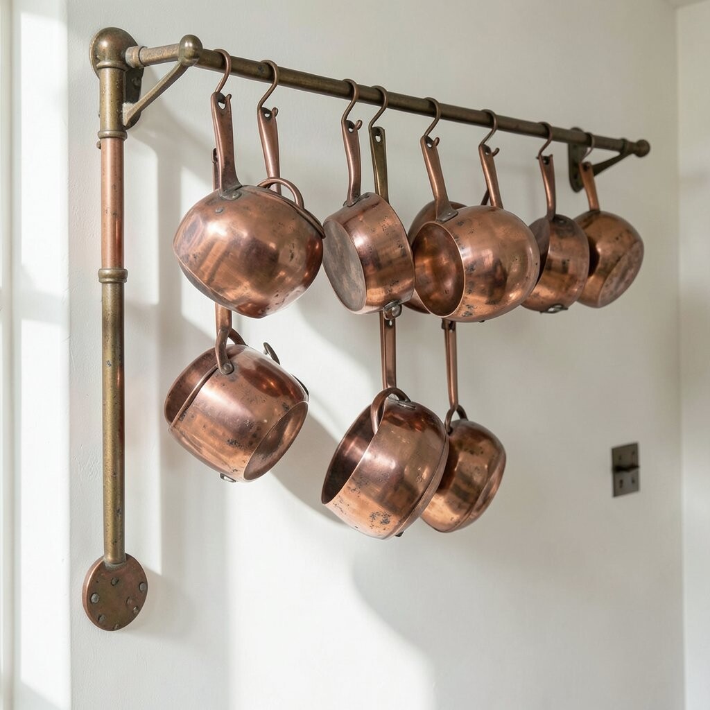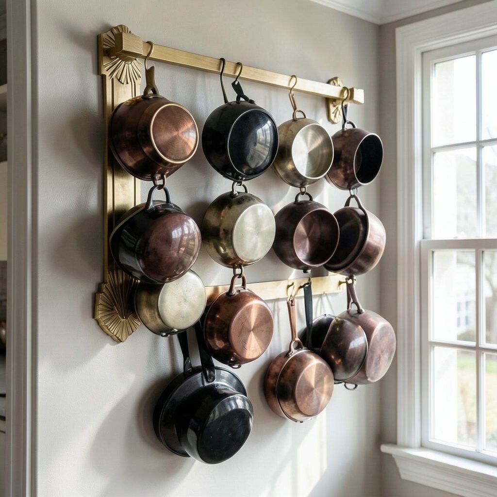 These racks are stylish and functional. They can hold a variety of pots and look stunning when the light hits them. A great way to show off your cookware.