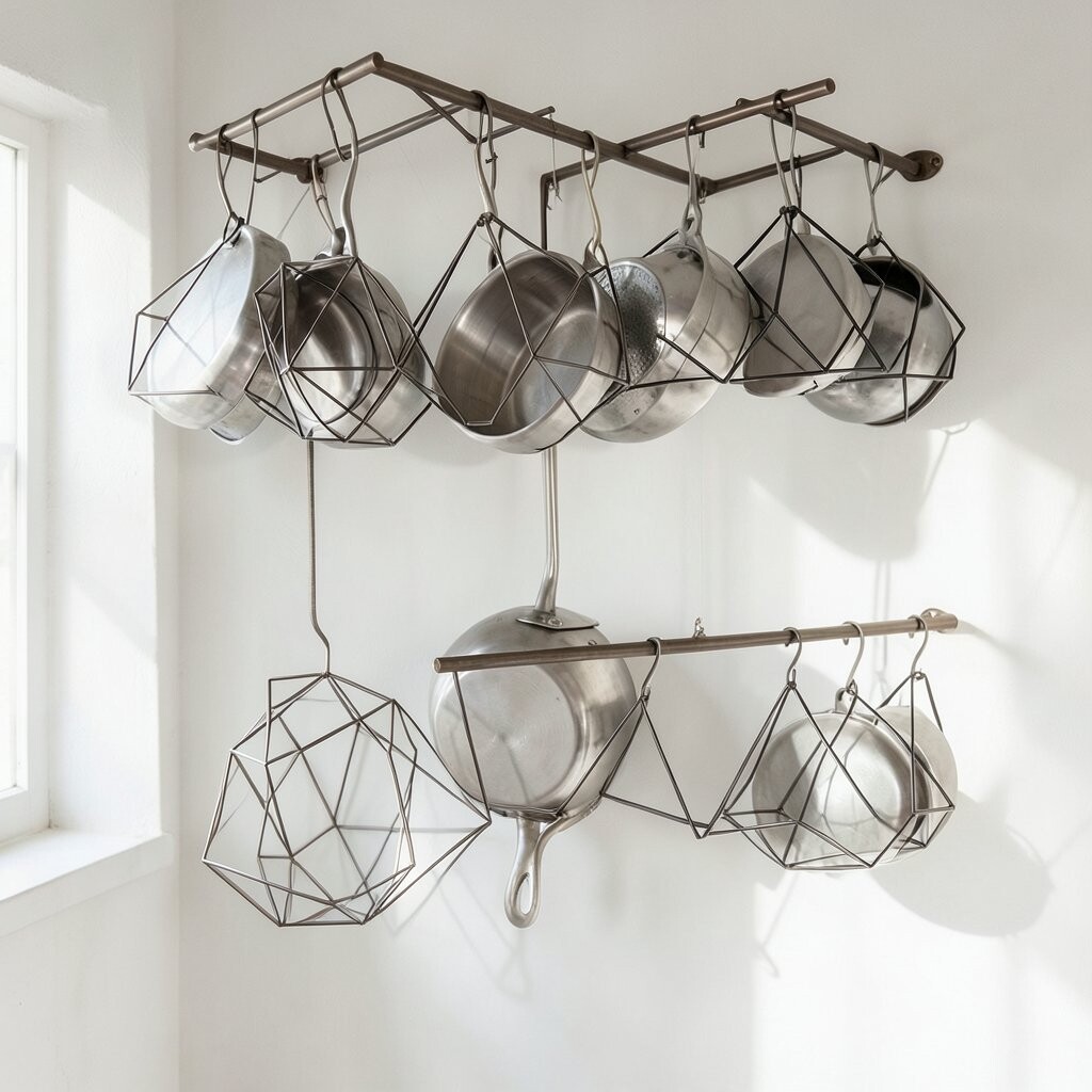 Geometric wire designs offer a modern and edgy look. They’re perfect for adding a bit of structure to your kitchen. Lightweight and stylish.