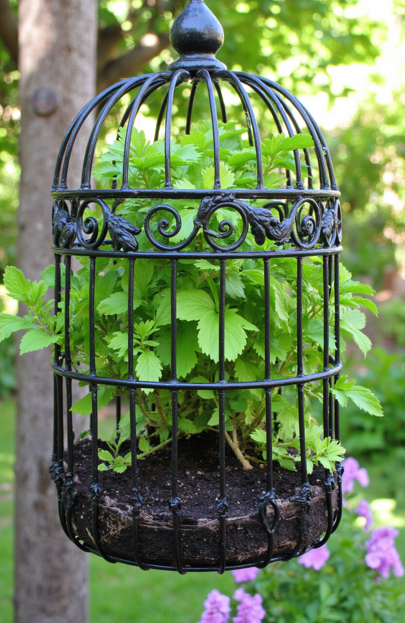 Use a decorative birdcage as an herb planter. It’s a unique and elegant look.