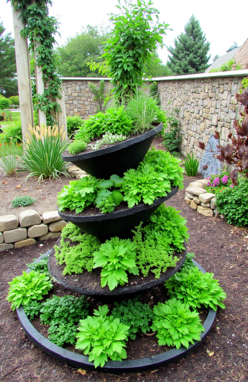 Create a spiral-shaped garden bed for a unique design. It’s great for maximizing space and variety.