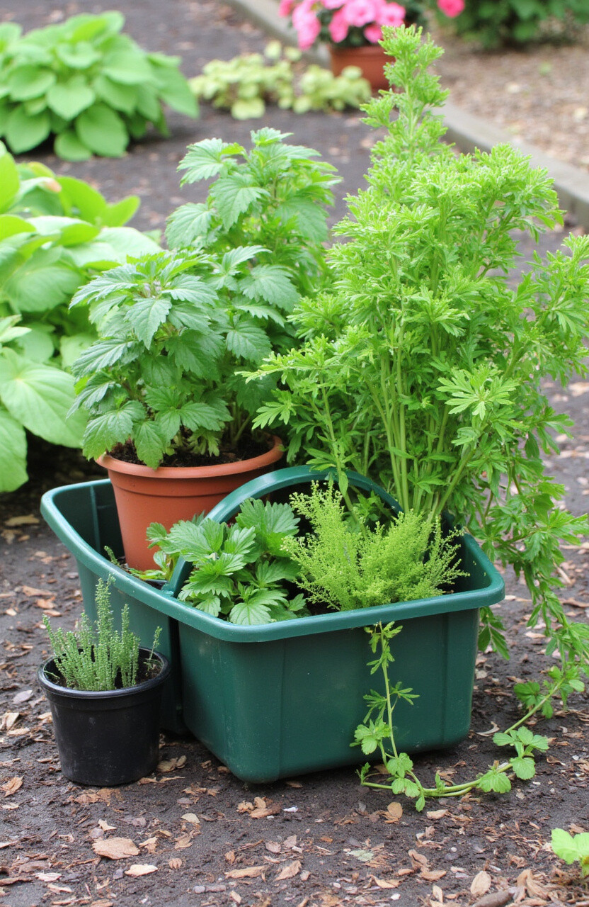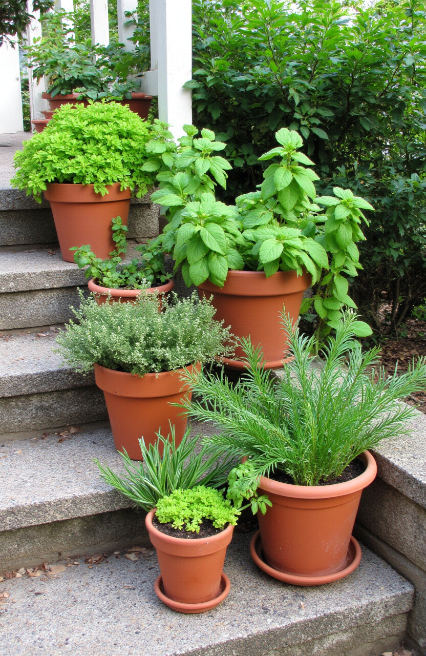 Classic terracotta pots are perfect for herbs. They provide excellent drainage and look charming.