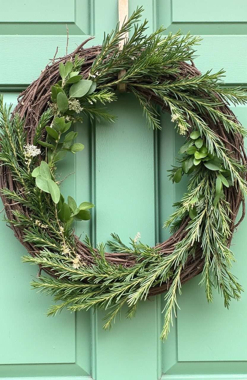 Attach herbs like rosemary and sage. Hang it on your door for a delightful welcome.