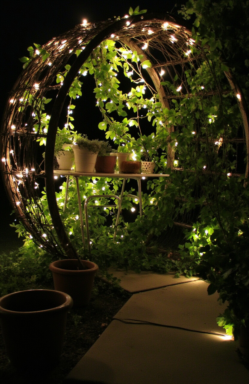 Weave lights through a trellis or around pots. It’s perfect for evening garden enjoyment.