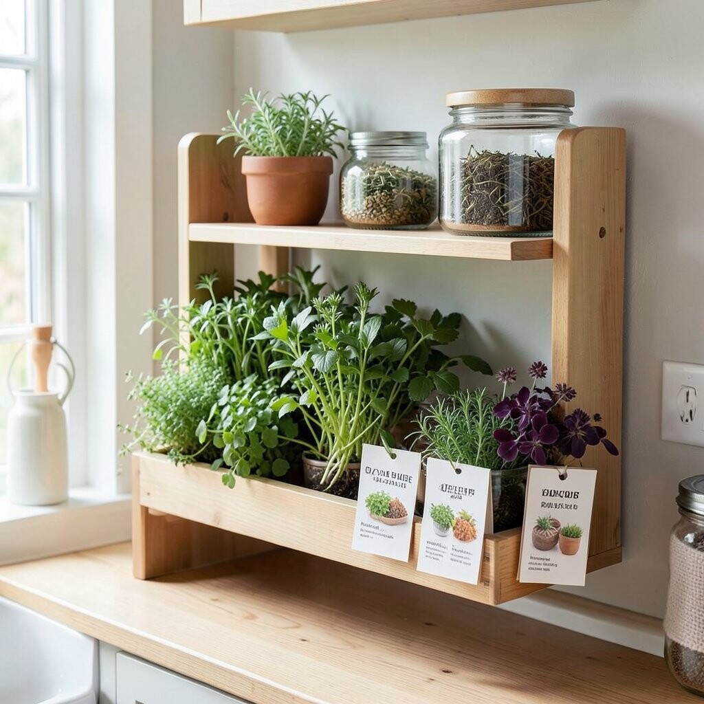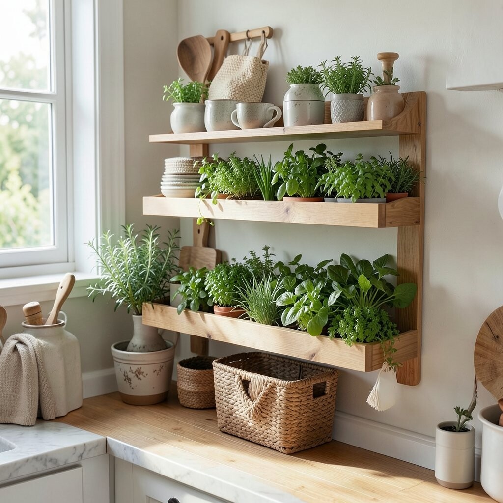This idea is great for homes that need both style and storage. It gives you room for herbs, jars, and even small cookbooks.