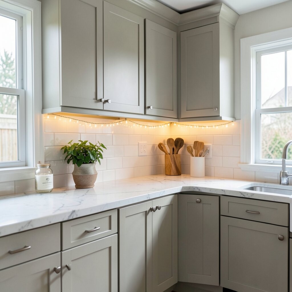 Battery-powered under cabinet lights are great when you do not want to deal with wires. They can be added fast and moved around if you change your kitchen style later.