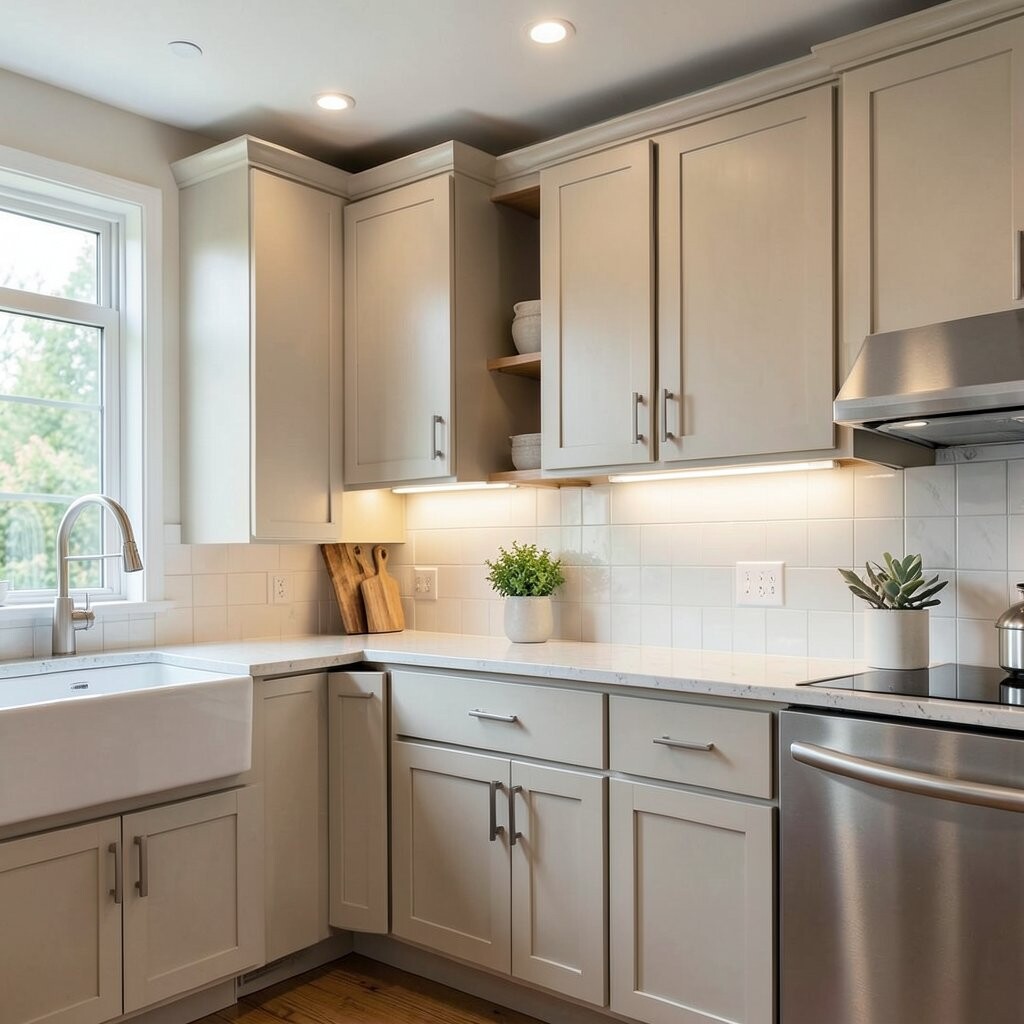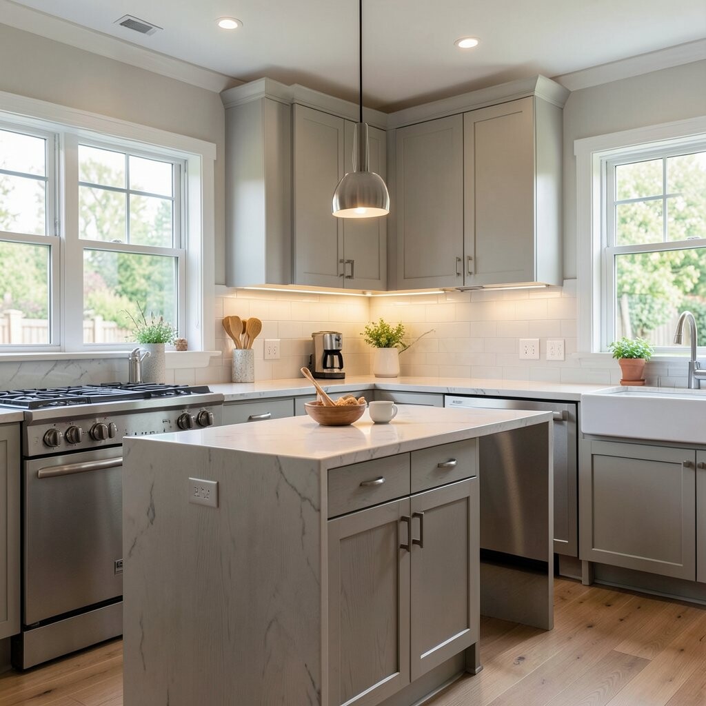 Choose this look if you like a soft, calm mood. The cost is often moderate, and the polished effect can make a plain kitchen feel special.