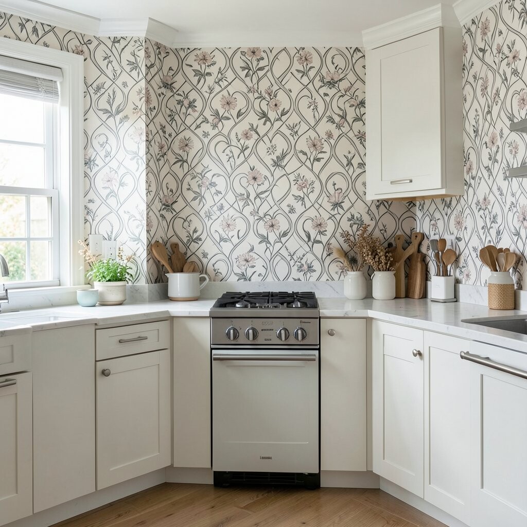 Kitchen walls can feel plain, but a little pattern can change the whole mood fast. When wallpaper meets stripes, checks, florals, or tiny dots, the room starts to feel lively and full of charm. It is like giving your kitchen a happy outfit that feels fresh every day.