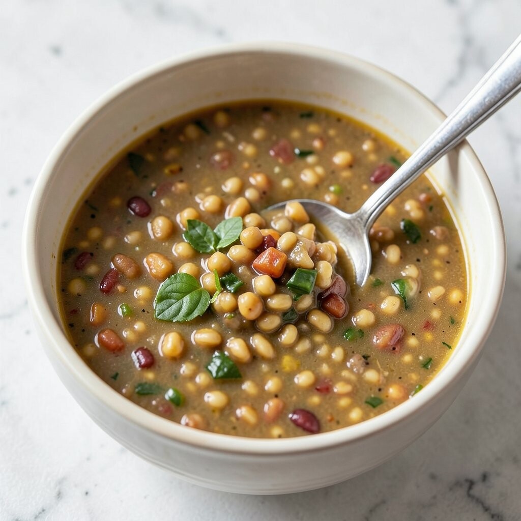 Barley soup has a wholesome, earthy feel, and Kitchen Bouquet makes that feel stronger. The broth turns deeper and the grains look more golden-brown.