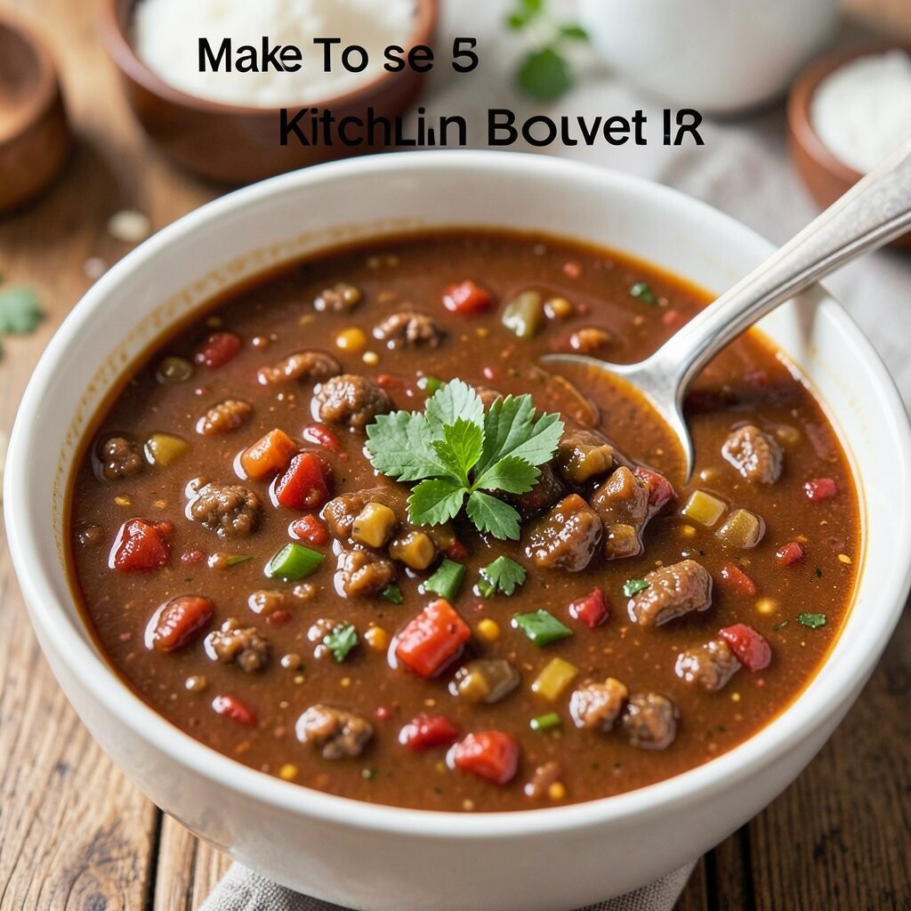 Chili soup loves deep color, and Kitchen Bouquet fits right in. It adds a dark, bold tone that makes the bowl look thick and hearty.