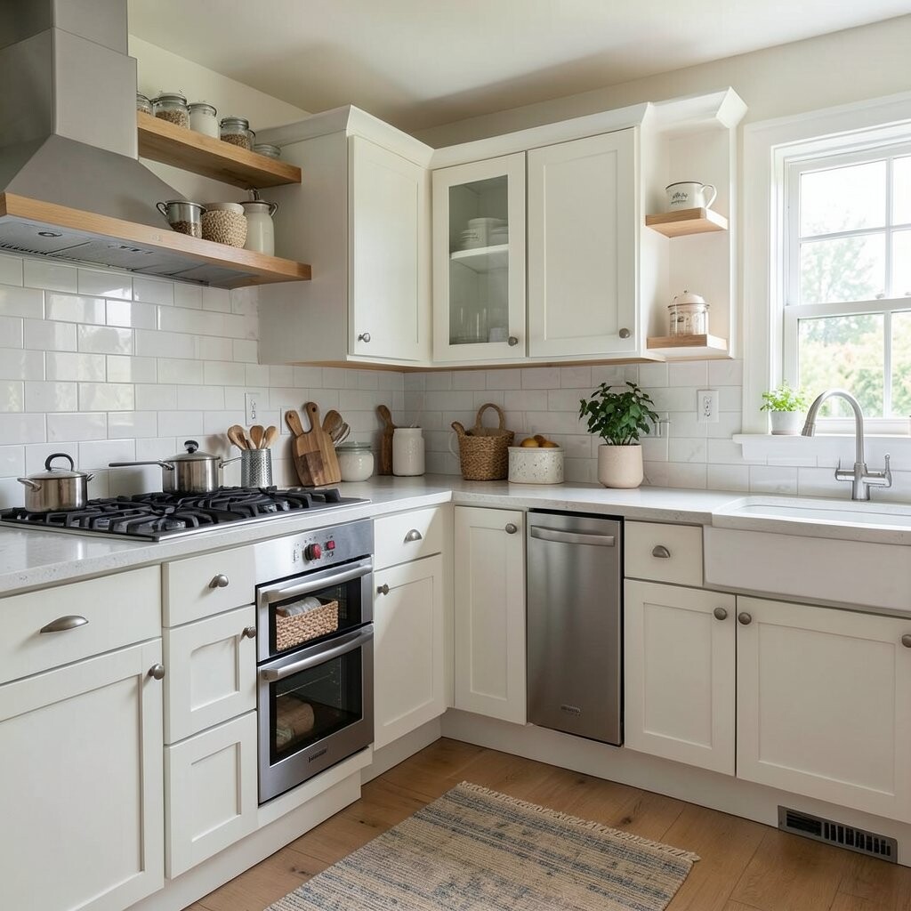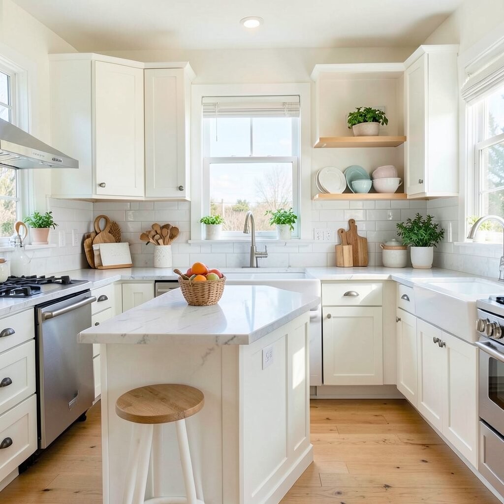 This style is perfect if you want a gentle space that feels happy. It works well in small kitchens because light colors help the room feel bigger.