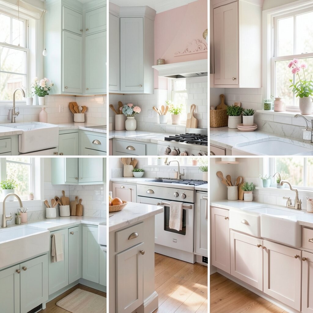 Pastel kitchens feel soft, pretty, and cheerful. Light pink, mint, lavender, and baby blue can make the room feel sweet without being too loud.