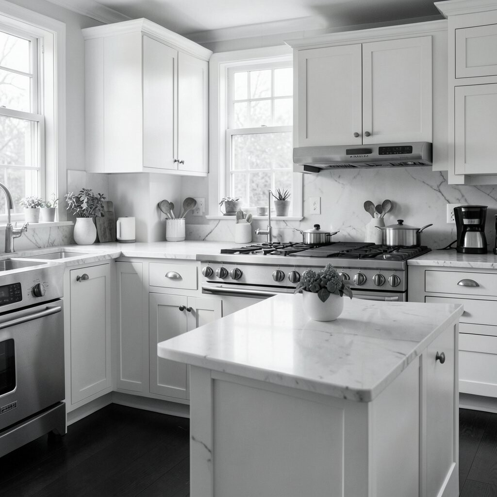 All-white kitchens shine with a bright, fresh look. White cabinets, white tile, and white counters make the room feel open and airy.