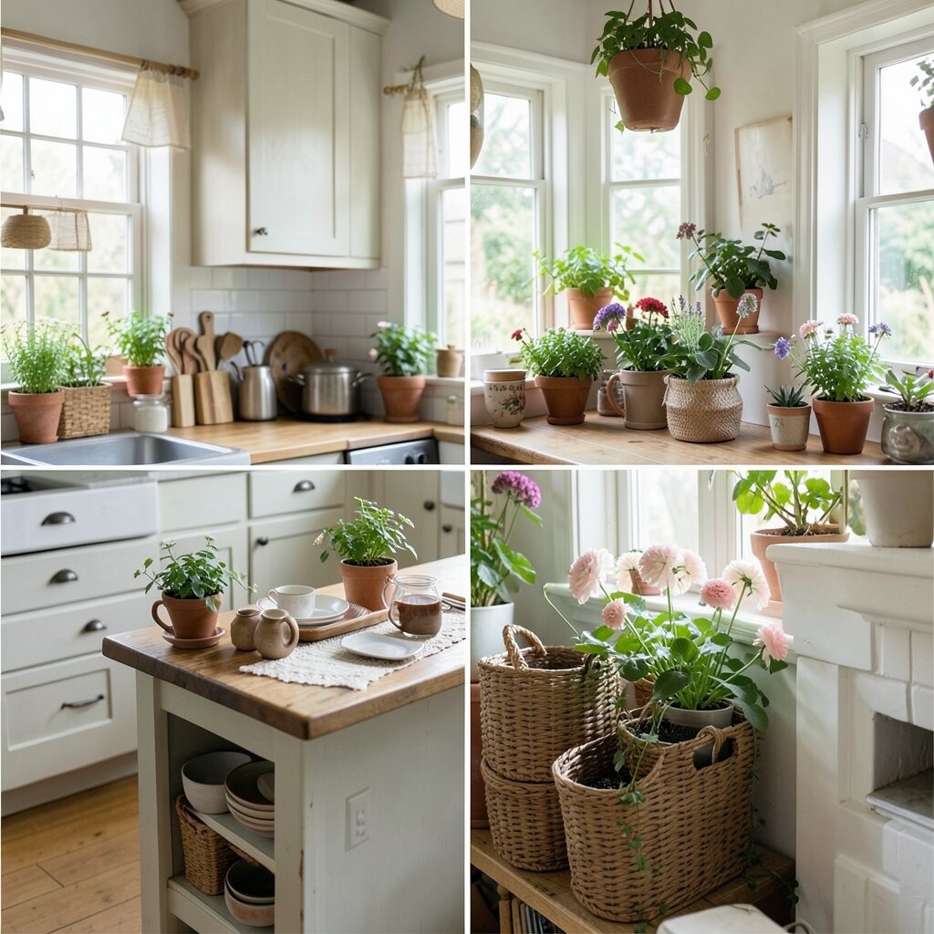 Cost can be low if you use what you already have and add small charming pieces. Try herb pots, old teacups, or a floral curtain to make it feel special.