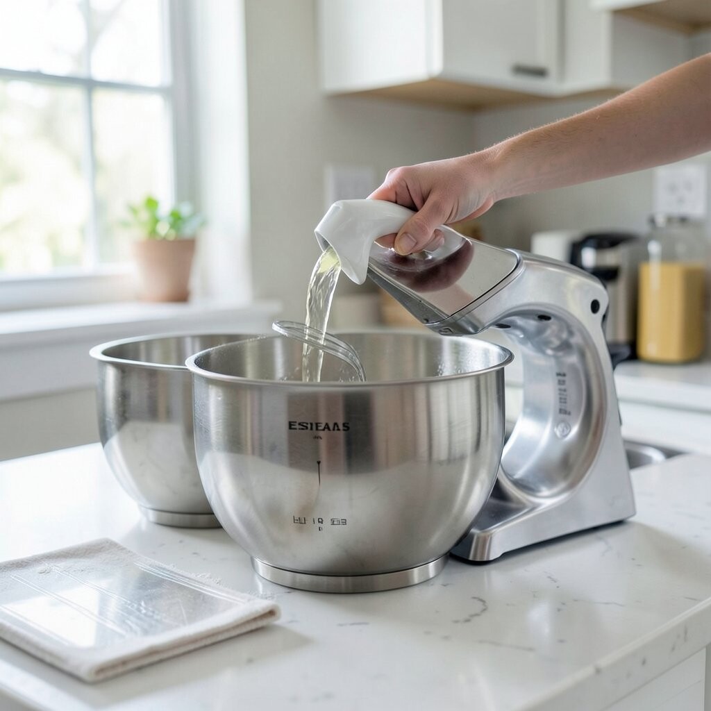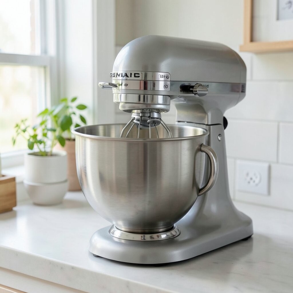 A stainless steel bowl is sleek, shiny, and very practical. It gives your mixer a clean, professional look that works in many kitchens.