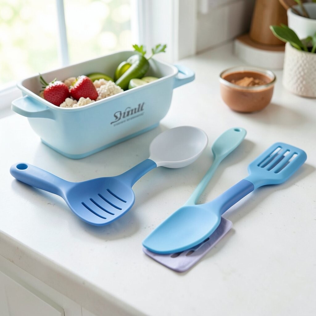 A silicone spatula set adds color and fun to your countertop. These tools are bright, flexible, and super helpful for baking and cooking.