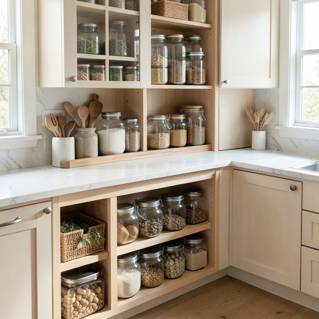 This style is both pretty and useful because you can see what needs refilling. It also helps food stay fresh and makes your pantry feel more planned.