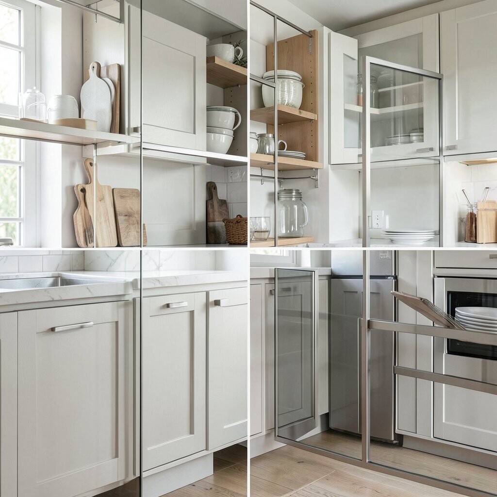 Clear-front cabinets bring a light, airy look that feels fresh right away. Glass doors or see-through bins help you spot what you need fast, and that saves time during busy mornings.