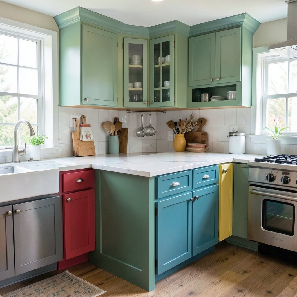 Painting only the island cabinets in a bright color can make the kitchen feel stylish right away. It gives the room a focal point without changing everything.