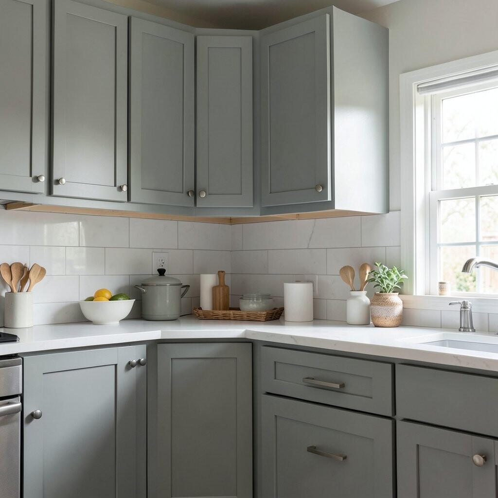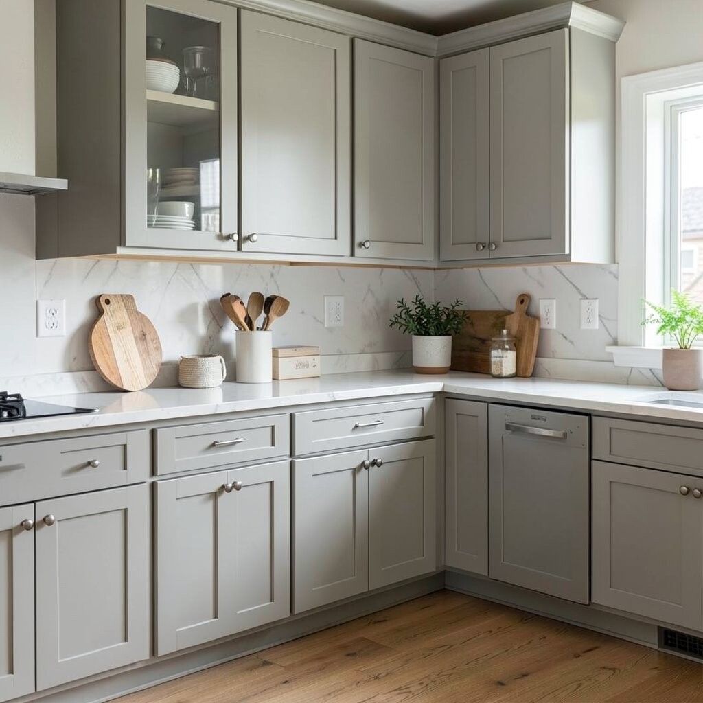 2. Calm Gray Cabinets for a Soft Modern Feel