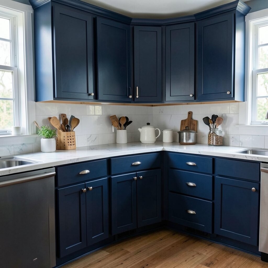 Navy blue cabinets add a deep, pretty color that feels both classic and trendy. They can make your kitchen look rich and cozy at the same time.
