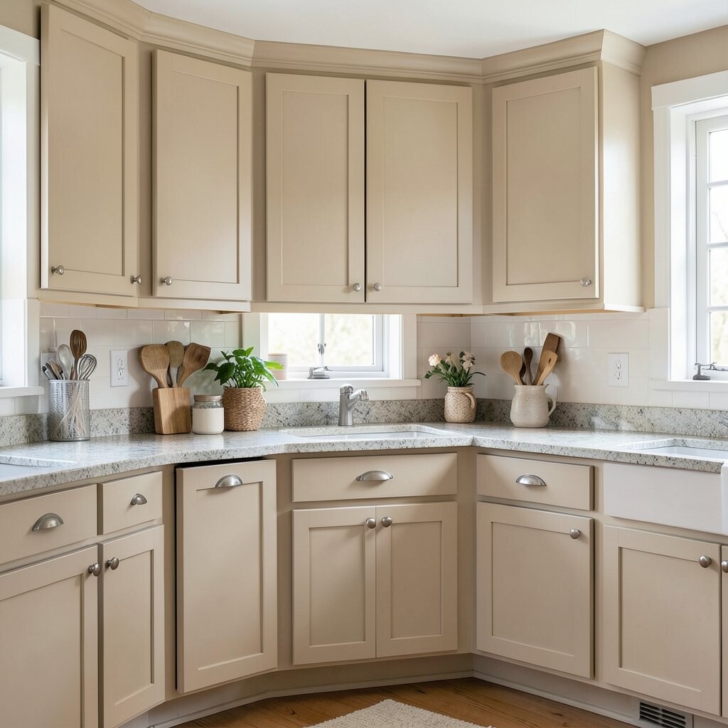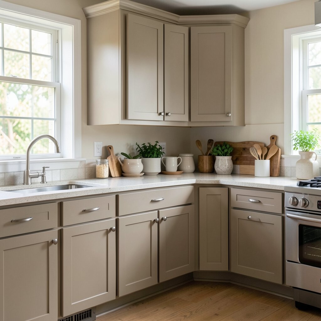 9. Warm Taupe Cabinets for a Cozy Neutral Style